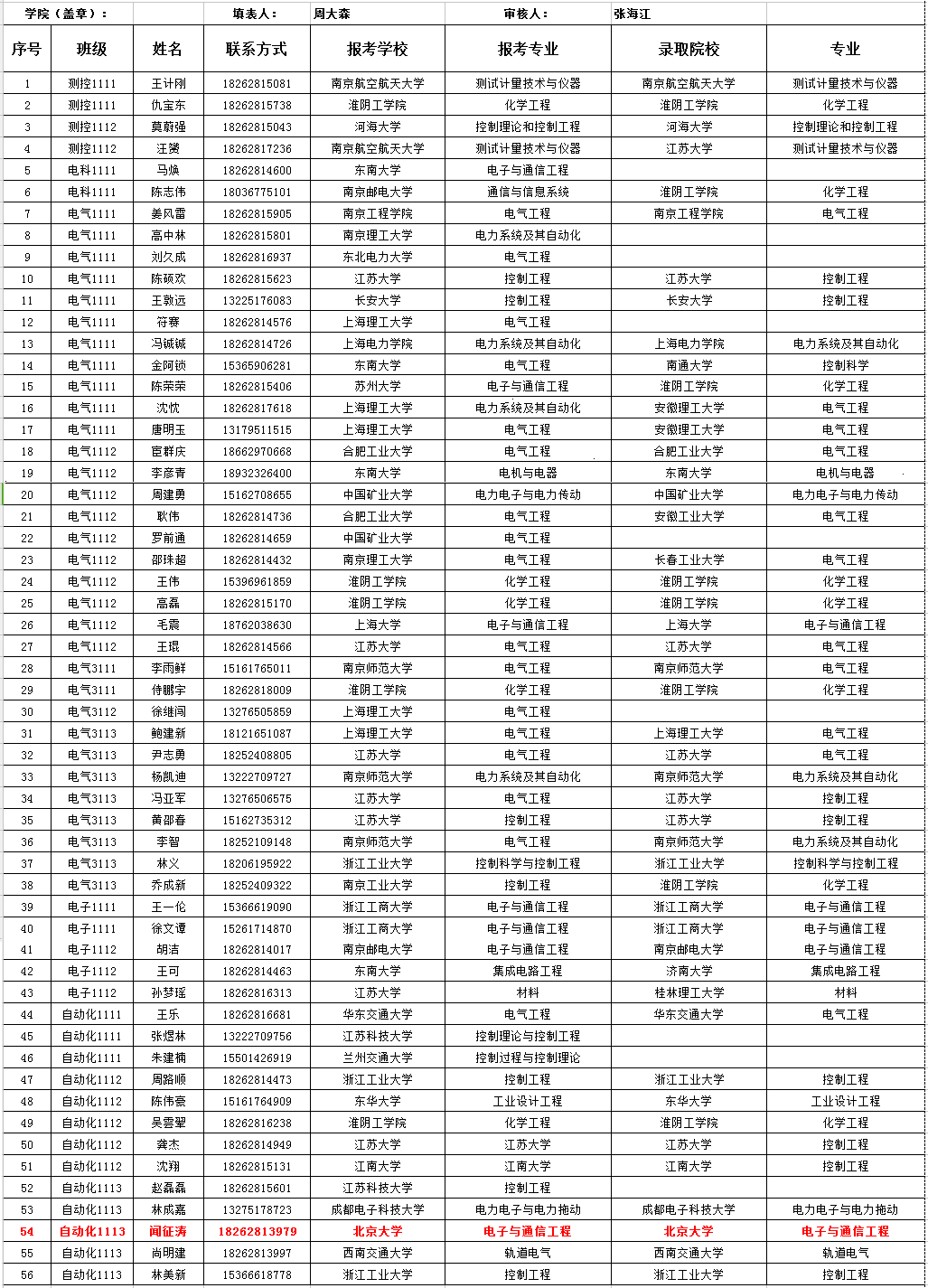 2015届考取硕士研究生学生名册