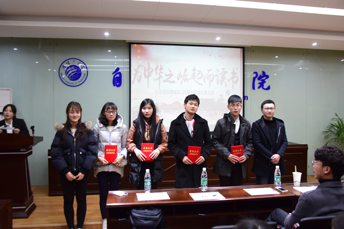 为了纪念周总理诞辰120周年,3月4日晚上7点整,自动化学院在笃行楼509会议室成功举办了以“为中华之崛起而读书”为主题的朗诵比赛决赛。出席此次比赛的评委有自动化学院学生会主席洪家乐,学生会副主席吕鑫波,信管部副部长耿胜天,自律委员会部长林玉杰及艺术团主持人队队长刘杰。