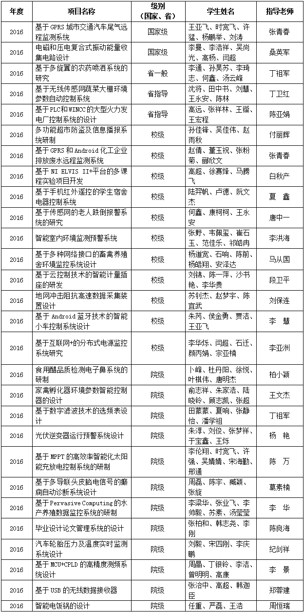 2016年大学生创新实践训练计划项目一览表