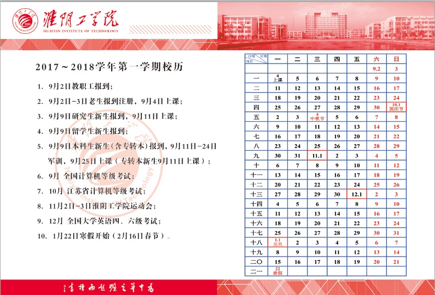 2017-2018学年第一学期校历