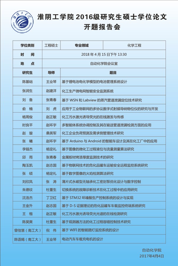 淮阴工学院2016级研究生硕士学位论文开题报告会