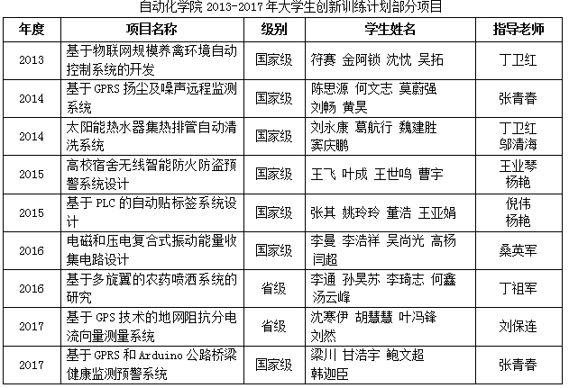 自动化学院高度重视大学生创新实践能力培养,积极组织学生申报并实施各级大学生创新训练项目,近五年,共获批国家级项目11项、省级项目23项,校院级项目46项。