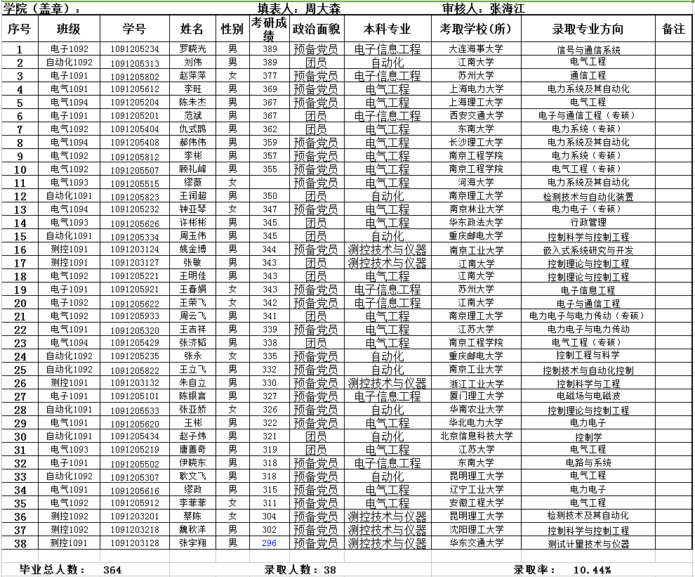2013届考取硕士研究生学生名册