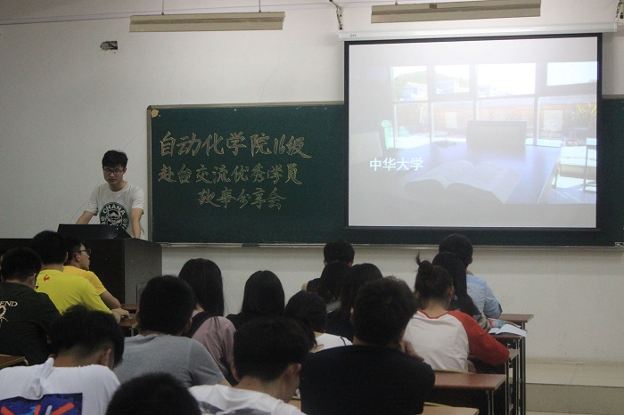 5月13日晚上7点,自动化学院在12号楼501教室举办16级赴台交流优秀学员故事分享会,2017级全体同学及16级赴台交流优秀学员参加了本次交流会。