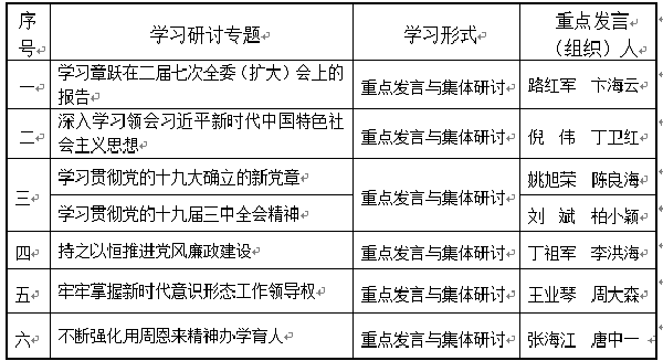 (3)中心组成员每人重点发言内容要紧密结合校情、院情,深入联系实际,有一定的理论深度,确保理论学习的实效和质量。
