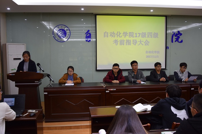 11月5日晚7点整,自动化学院在笃行楼509会议室召开了英语四级考前指导大会。出席本次会议的有自动化学院学生会主席洪佳乐,学生会团委副书记陈涛,办公室部长王智,16级学习部部长裴元鑫,17级学习部部长仝光明,17级学习部副部长韩淑雨及17级新生。