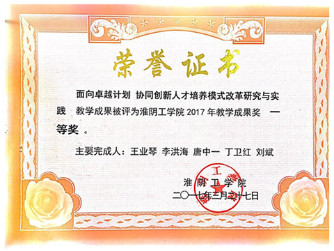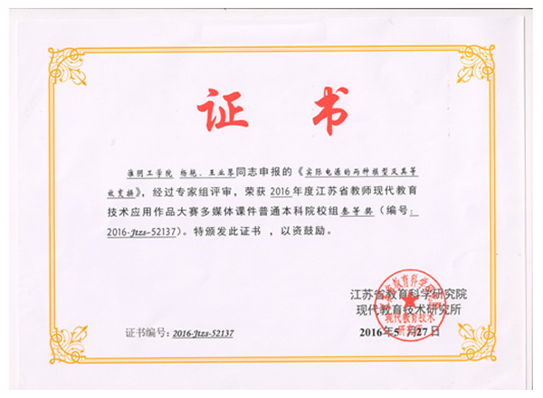 团队成员先后获校青年教师课堂教学竞赛二等奖2项、三等奖3项,主持电路理论、电工电子技术、电工基础校优秀课程建设,其中《实际电源的两种模型及其等效变换》课件荣获2016年度江苏省教师现代教育技术应用作品大赛三等奖。承担各级各类教研教改项目5项,发表教研教改论文7篇,获校教学成果一等奖1项。主编、参编教材1部。指导学生获江苏省普通高校优秀毕业设计(论文)二、三等奖各1项,优秀毕业设计团队1个。2013年以来,团队指导学生参加全国大学生电子设计竞赛荣获一等奖1项,二等奖12项。