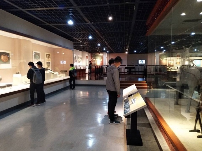 活动伊始,电气1171班先到达淮安市博物馆并对其进行自由参观。在参观过程中,各位同学欣赏了淮安市博物馆中的陶瓷器、玉石器、青铜器、钱币、书画等精美的艺术品。其中高庄战国墓出土的刻纹青铜器、青铜马车饰件、双囱原始瓷带盖熏炉等战国重器;运河村战国墓出土的木雕鼓车;徐伯璞先生1984年捐赠的近现代名家书画等藏品给参观同学留下了深刻的印象。最后,电气1171班参观人员在博物馆前留影纪念。
