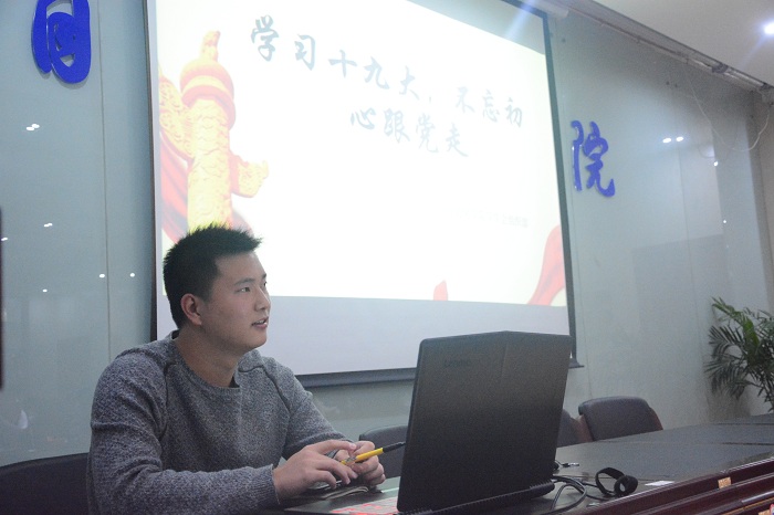 在本次团课上,邹宜迪部长首先为大家播放了两部短视频,让团员们对十九大有较为初步的认识,以及作为一名共青团员该如何做。接着,组织部副部长王丽倩给简要介绍了一下十九大。然后,邹宜迪部长就作为大学生应有怎样的担当、大学生应有怎样的大学梦等方面向大家提问,团员们积极思考,踊跃发言。之后,邹宜迪部长让大家观看十九大报告视频,并就其中的要点进行了问答。接着,组织部副部长孟涛朗读了十九大对我们的启迪。然后,邹宜迪部长给大家播放了部分学校关于党的十九大的视频。最后,邹宜迪部长表达了自己对十九大的理解。